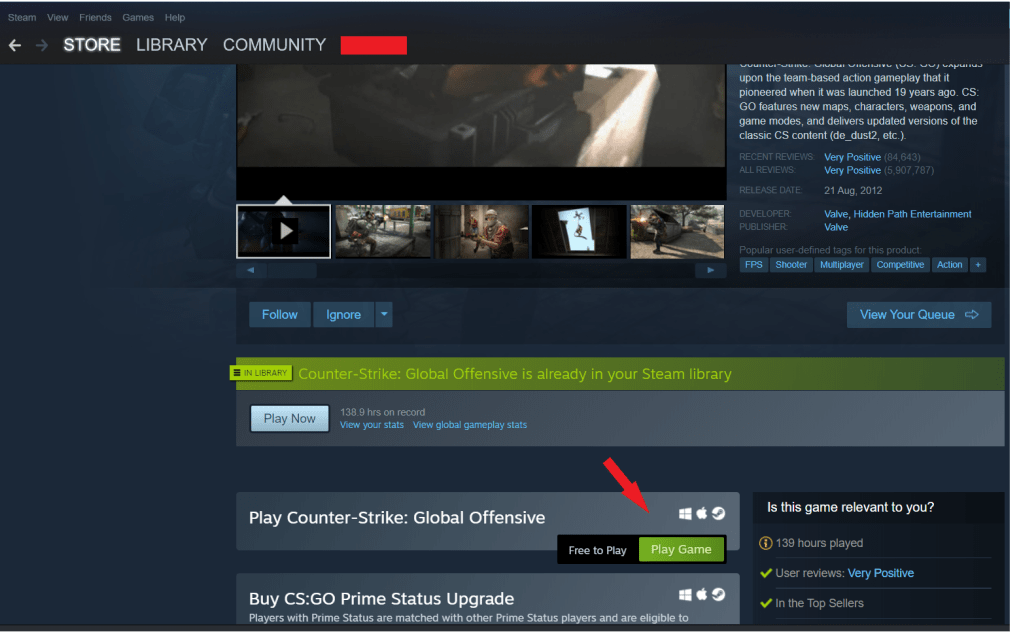 Condition zero is a tremendous offering of single and multiplayer content.. Go features new maps, characters, weapons, and game modes, and delivers updated versions of the classic cs content (de_dust2, etc.). The game can be accessed by going to your steam library... Click on the play game button.